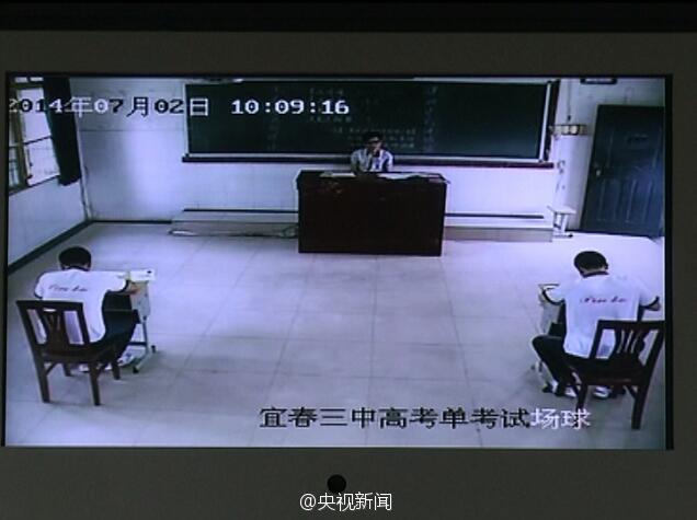 "夺刀少年"柳艳兵和易政勇9点开始了他们的单独高考,所有科目由江西考试学院单独重新命题,宜春市教育局局长担任主考,考场全程视频监控,所有考务人员均凭证进入。当地表示,考试公平公正是第一位的,不会因为考生身份特殊而放松考场纪律。图片来源:央视新闻微博