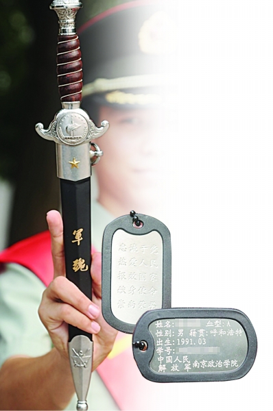 7月3日,解放军南京政治学院举行2014届学员毕业典礼。和往年不一样的是,每一名毕业学员都收到了学校送给他们的一份专属礼物——一把铭刻了自己名字的军魂剑和两块记录身份信息的军人身份牌。扬子晚报记者昨天独家采访了院方,了解到军魂剑和身份牌对于军校毕业学员特殊的意义。