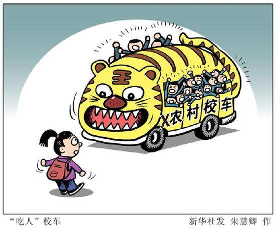 漫画:“吃人”校车。 新华社发 朱慧卿 作