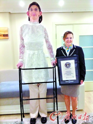 土耳其少女鲁梅伊莎·盖尔吉以2.136米的身高,被吉尼斯世界纪录认定为“世界最高青少年(女)”(如左图)。