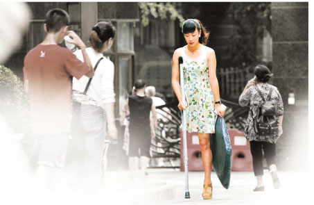 阿依说,她每次演出都穿长裙盖住身体的瑕疵,但获得自信的她越来越渴望成为一个普通的女孩,可以抬头走在大街上。3年前,阿依在朋友的鼓动下第一次进商场买了高跟鞋。“回忆起周围试鞋女孩看我的样子,我感到了好奇、同情,但绝对没有轻蔑。”阿依说,从买高跟鞋开始,她开始第一次和身边的眼神做面对面的碰撞,她发誓一定要适应。但在买回高跟鞋不久,她就从楼梯上滚了下来,差点把腿摔骨折。“还好当时没放弃,现在我可以从容地穿20厘米高的高跟鞋了。”阿依说,穿上高跟鞋后,她感到自己和街上的普通女孩没有了分别。而后,她又有了很多第一次,第一次走进健身房练瑜伽,第一次打羽毛球……“我也经历过自卑,不过能够战胜自己,我很开心。”阿依说。