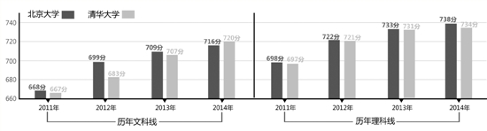 北大今年浙江招生属于丰收年。昨天,北大浙江招生组组长李祎公布了一串数据:北大在浙江理科一批录取按100%投档,分数线为743分(全省第36名),理科前10名考生中有8人选择报考北大。因为高分考生报考踊跃,北大在浙江扩招理科8人,扩招后分数线为738分(全省第73名)。