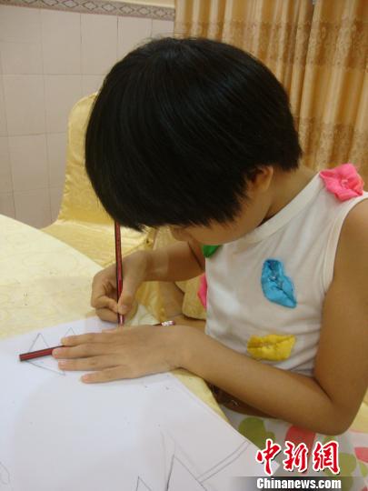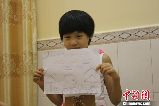 16日,身患重症再生障碍性贫血(白血病)的11岁湖北随州农村女孩陈述珍来到珠海斗门,这个曾被生母抛弃的小女孩准备在珠海度过人生最后一段时光,并且在死后将眼角膜等器官捐献给有需要的患者。图为陈述珍举起自己的画