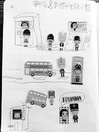 昨天晚饭前,女儿收到朋友送来的2张不干胶贴画,上面全是卡通人物。趁饭前几分钟的时间,女儿一口气创作出了一组名为“萝卜头&高帽子主题小镇”的连环画(右图为其中一幅),简单好玩的搭配和有趣的故事情节让陈妈妈惊讶不已。看着妈妈高兴的样子,女儿也夸自己“想象力丰富”。