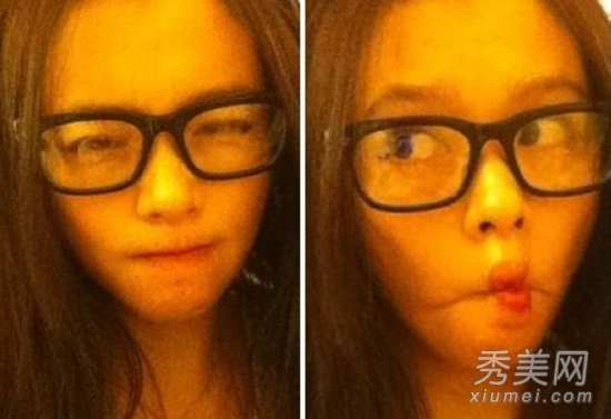 戴着黑框眼镜卖萌的徐若瑄虽然没有化妆,但是令人羡慕的紧致巴掌脸和光滑的皮肤一点也没有透露出她的年龄,不愧是“童颜美女”。