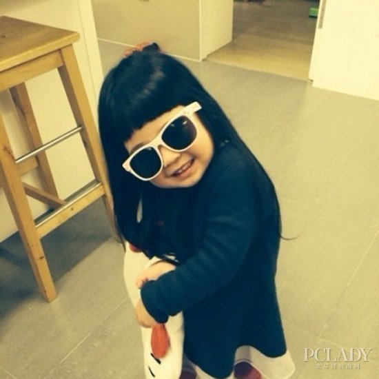 包子妹一头乌黑的长发搭配酷酷的太阳镜,这样看起来显得乖巧可爱了不少。