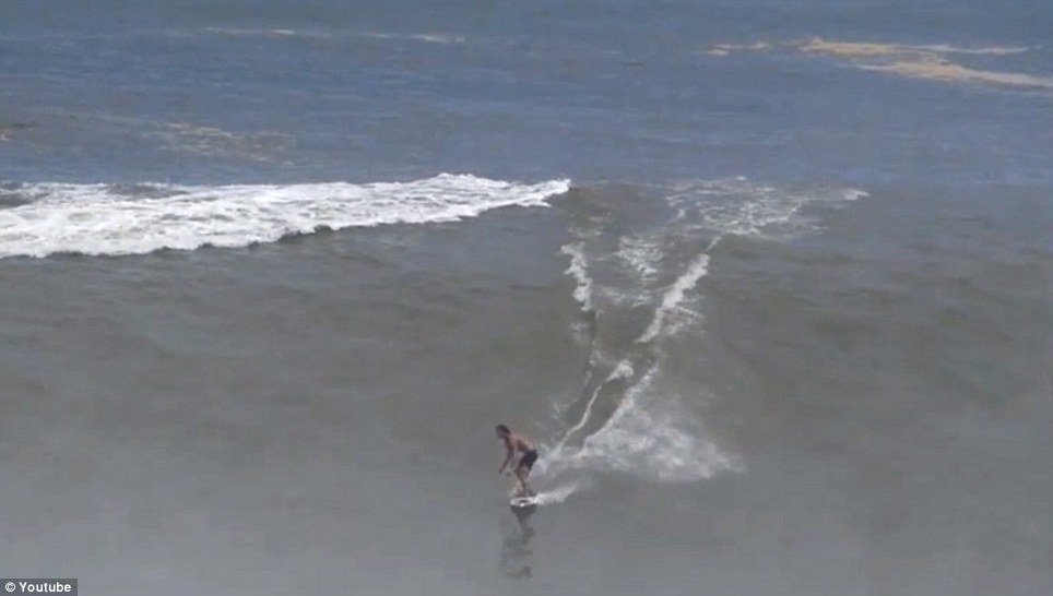 据英国《每日邮报》7月15日报道,一名25岁的美国小伙本月初在墨西哥埃斯孔迪多港口被拍到轻松滑下是其10倍高的巨浪。小伙名叫布拉德·杜马克(Brad Domke),来自美国弗罗里达州,从12岁开始就将浅水冲浪作为自己的事业。视频里,尽管海浪大起大落,但他仍能够稳站在滑板上。