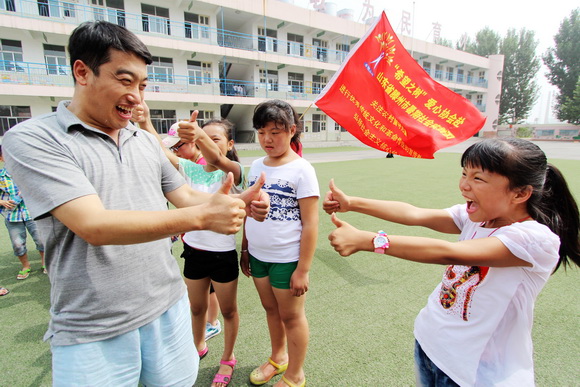 被誉为“阳光记者”的杨慧峰是7月24日从北京赶到留守儿童快乐成长活动站的,他将在这里陪孩子们度过两天的假日生活。“当我看到,在滕州有209名留守儿童在暑假里不能和自己的亲人团聚,感到他们太需要关爱了,一种责任感让我立即定了高铁票,赶到孩子们身边。”