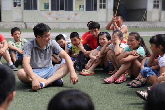 “阳光哥哥来了!”在同学们的一片欢呼声中,大家踊跃地向留守儿童活动站辅导员——被亲切称呼为“阳光记者”的杨慧峰涌去。