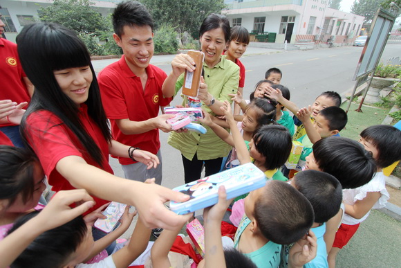 据了解,此次捐赠活动,由山东青年政治学院“有我在伴——农村留守儿童学校社会工作服务项目”负责人权福军教授倡议发起,学校向留守儿童捐助了400多件衣物和学习用品,山东省宝福邻购物中心股份有限公司为留守儿童捐赠了价值2500元的爱心大礼包。
