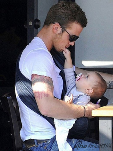 最帅奶爸凯姆-吉甘戴,帅的气凯姆-吉甘戴将女儿放在前胸的挂袋里,他照顾女儿的温柔模样真是迷人。袋鼠爸比,真是看一次萌一次哦!