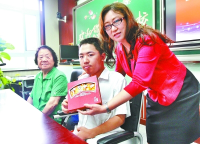 上午,人大附中第二分校专门为曹兆昱开了个“庆祝会”,中学老师、大学老师和曹兆昱的高中同学都来分享他的快乐。