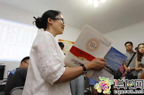 重庆师范大学负责招生工作的老师讲解录取通知书的发放流程。 首席记者 李靖 摄