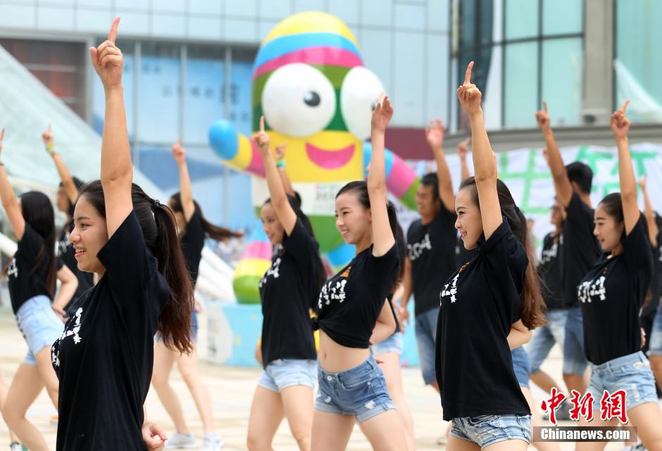 7月26日,一百多名南京青奥会颁奖礼仪志愿者在南京新街口正洪街广场集中亮相,以一场充满青春活力的舞蹈快闪助力青奥会网络火炬传递,同时呼吁更多的人关注并参与到青奥会中来。据了解,作为南京青奥会重要组成部分的网络火炬传递,目前全球网络火炬传递人气指数超过6600万。中新社发 泱波 摄