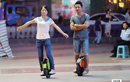 一对30来岁的夫妻对独轮电动车很感兴趣,男子站上独轮电动车试了下,结果还没开动,就摇摇晃晃掉下来了,“平衡太难掌握了,估计是学不会了。”记者也体验了一把,上车后确实感觉平衡难掌握,在人搀扶的情况下才勉强能开动。