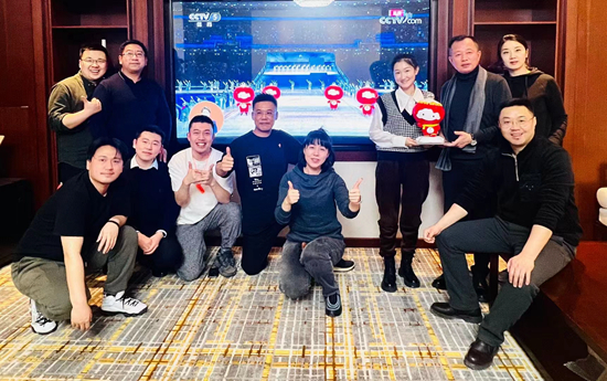 这天晚上,雪容融设计团队的成员们在一起观看了冬残奥会的开幕式直播,带着雪容融一起拍了张“全家福”。