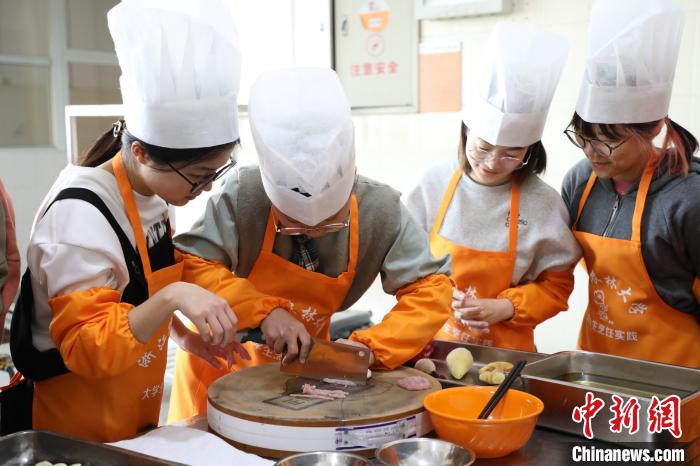 学生在体验劳动教育课程。 浙江农林大学后勤服务中心提供