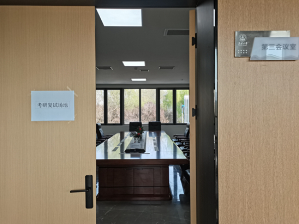 “考研复试,请勿打扰。”因此,学校将会议室、办公室、活动室等变身成“复试小屋”,配备上路由器、三脚架、电脑转换接头、接线板等设备,并挂上相应的提示牌,还有师生志愿者进行现场服务。这样的复试场所,不仅让校内学生享受到“贵宾待遇”,也得到了外校考官的赞赏。