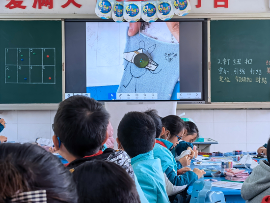 合肥师范学院附属实验小学钉纽扣劳动课堂。(校方供图)