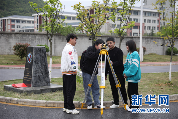贵州水职院学生在校内学习工程测量。新华网 卢志佳 摄