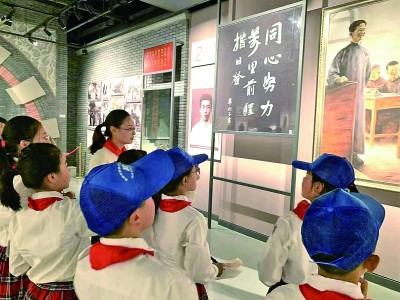 江苏淮安新安小学少先队员参观周恩来纪念馆。光明图片