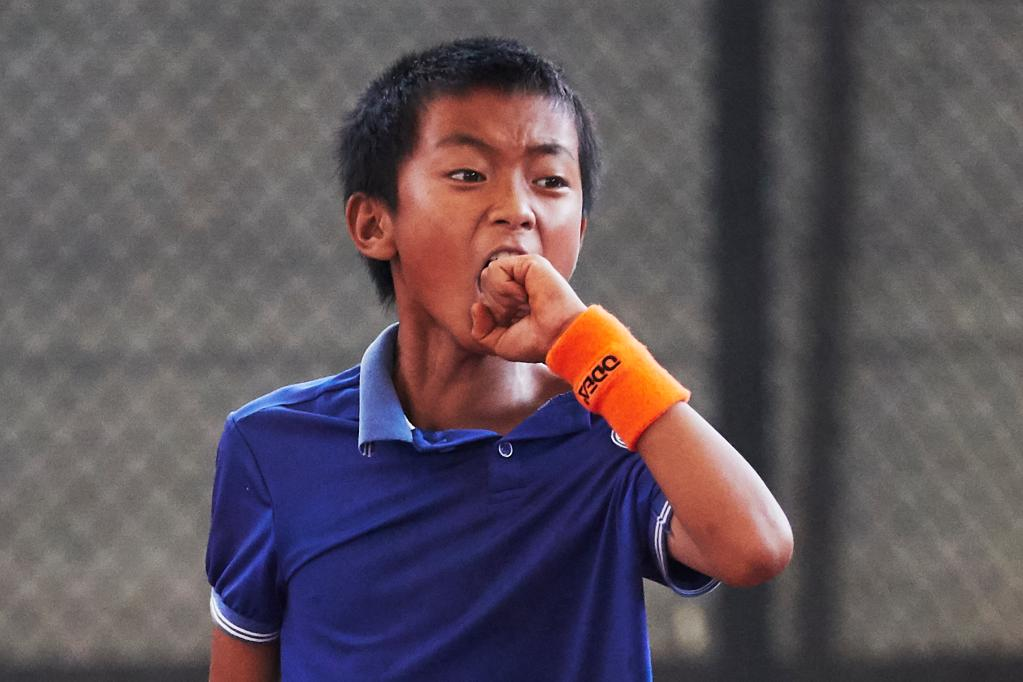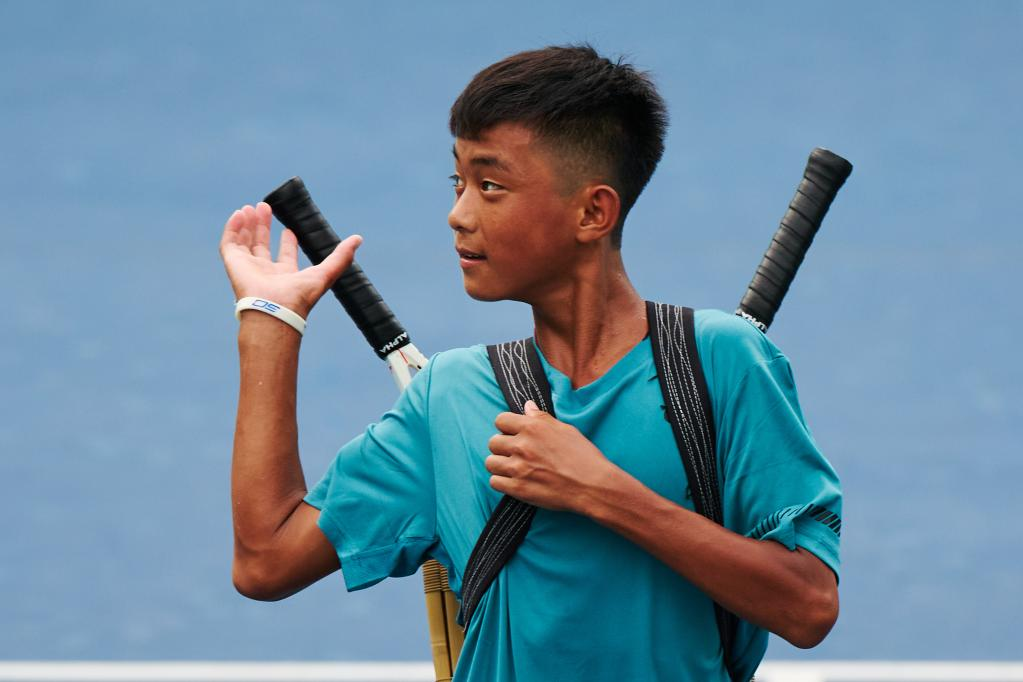 8月底,在2022亚瑟士青少年网球巡回赛广州站,一个背背篓上赛场的少年一路过关斩将,拿到U14组男单冠军。
