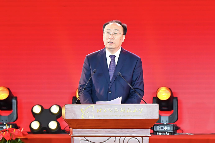 北京市委教育工委分管日常工作副书记张革在发言中表示,北京信息科技大学作为北京市重点支持建设的信息学科较为齐全的高校,有着光荣的历史传统和鲜明的办学特色。85年来,学校始终传承红色基因,坚持立德树人根本任务,积极服务首都发展,为加强北京“四个中心”建设作出了贡献。他希望北京信息科技大学在服务新时代首都发展上立新功,在建设教育强国、人才强国的伟大征程中,书写更加绚烂的历史篇章,作出新的更大贡献。