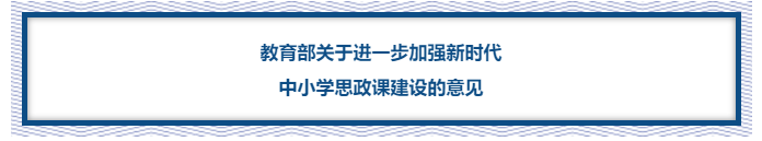 《意见》指出,加强新时代中小学思政课建设,要以习近平新时代中国特色社会主义思想为指导,深入贯彻落实习近平总书记在学校思想政治理论课教师座谈会上的重要讲话精神和关于思政课建设的重要指示批示精神,加强党对中小学思政课建设的全面领导,全面贯彻党的教育方针,落实立德树人根本任务,积极培育和践行社会主义核心价值观,推进大中小学思想政治教育一体化建设,充分发挥思政课关键课程作用。