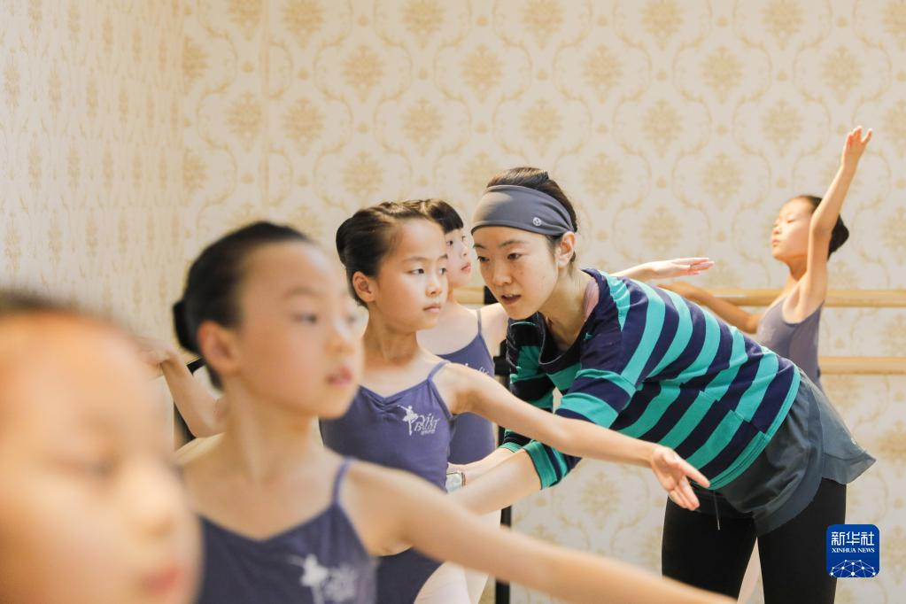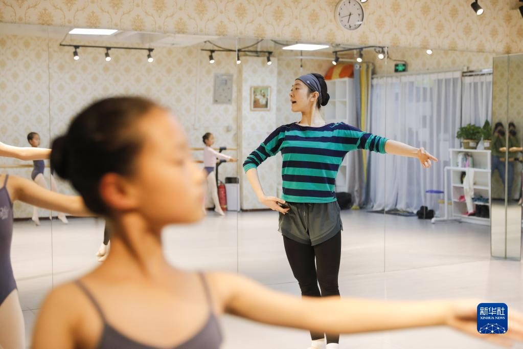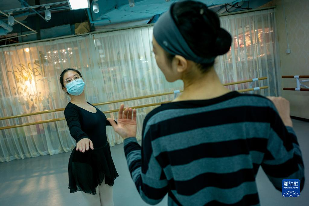 11月4日,在北京的舞蹈教室,赵蕴辉为学生指导动作。 新华社记者 方欣 摄pagebreak