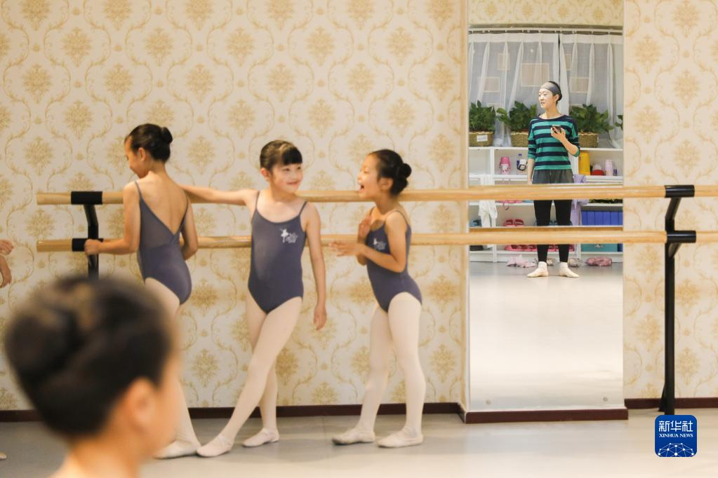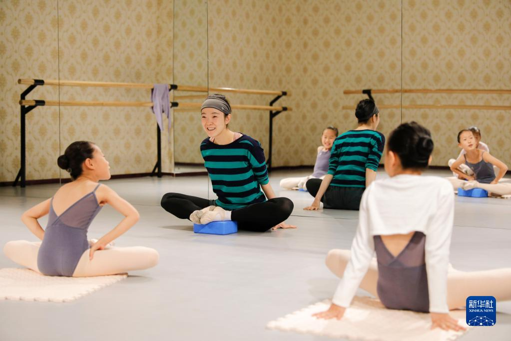 11月4日,在北京的舞蹈教室,赵蕴辉带领学生进行芭蕾训练。 新华社记者 方欣 摄