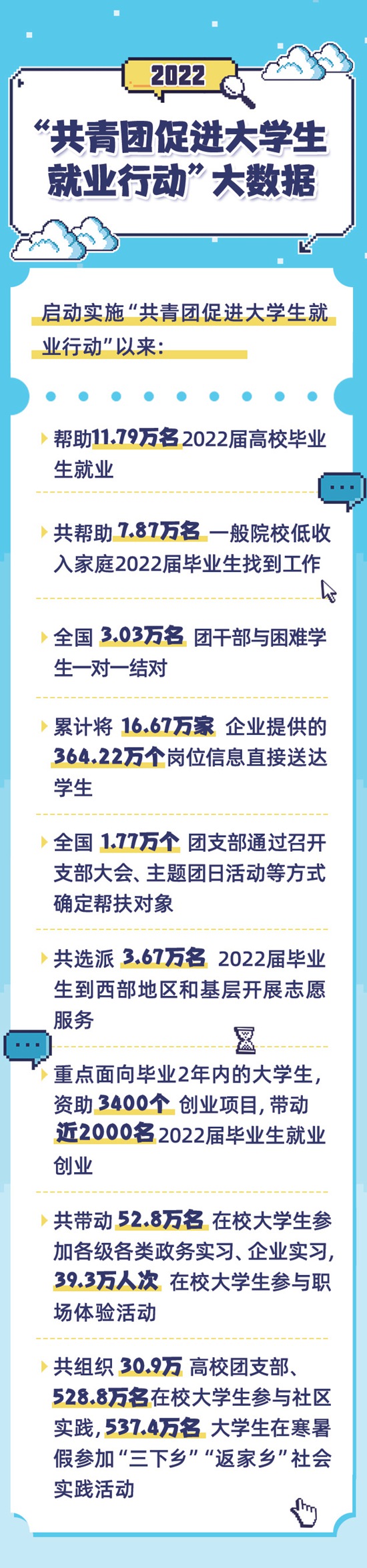 “2022年即将过去,2023届毕业生即将开始自己的毕业征程,希望同学们都能找到理想的工作,共青团和‘团团微就业’愿助大家一臂之力。”共青团中央青年发展部有关同志说。(中青报·中青网记者 杨宝光)