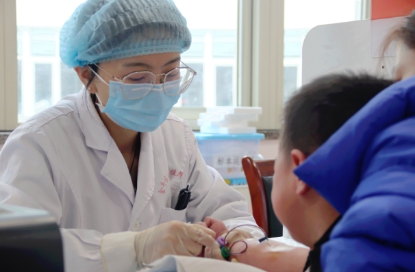 成都市金牛区妇幼保健院,医护人员正给孩子采血。但科谛 摄