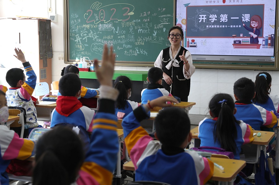 新华网北京2月13日电 今日,北京市百万中小学生迎来春季新学期。这是新冠病毒感染实施“乙类乙管”后师生首次大规模集中返校。沐浴着初春微风,海淀区五一小学全体师生也迎来了“久别重逢”。