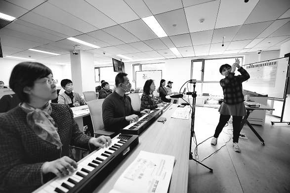 9时30分,国家老年大学魏公村校区“识谱与歌唱”课程教室座无虚席,40余名学生聚精会神地听讲。“我们来学校上课,不光是要学习唱歌,还要会识谱,懂乐理。”教师张沁琪手抚一台电子琴,边弹边唱。面向中老年学员,她特意设计了“引导型”的教学方法,用中老年人熟悉的曲子引入,带领学员寻找歌曲音准和节奏。
