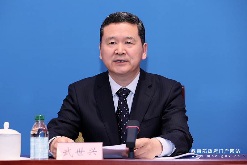 教育部高等教育司副司长武世兴介绍推进构建高质量高等教育体系有关情况。(中国教育报记者 张劲松/摄)