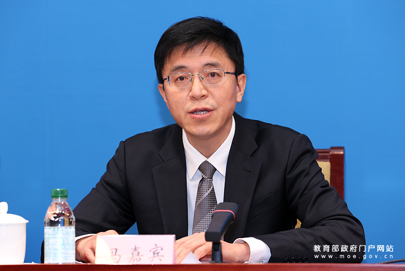 教育部基础教育司副司长、一级巡视员马嘉宾介绍基础教育发展提升有关情况。(中国教育报记者 张劲松/摄)