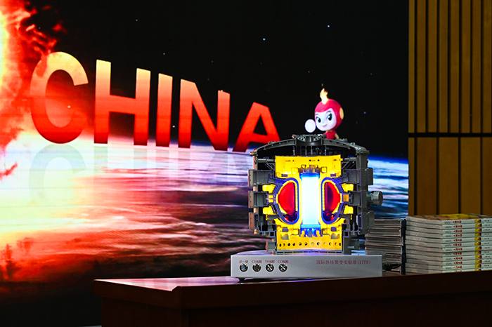 科技部中国国际核聚变能源计划执行中心主任罗德隆演示热核聚变模型