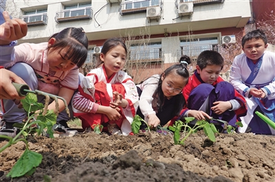 “土膏初动麦苗青,饱食城头信意行”“布谷飞飞劝早耕,舂锄扑扑趁春晴”“鉏麦家家趁晚晴,筑陂处处待春耕”……3月29日上午,在朗朗的吟诗声中,北京十一学校丰台小学的师生们迎来了一年一度的春耕节。该校将通过此次春耕活动做好对学生们的生命教育、仪式教育、劳动教育以及德育教育,本学期还将据此结合其他学科开展有关园林、手工、烹饪等方面的项目式学习课程。
