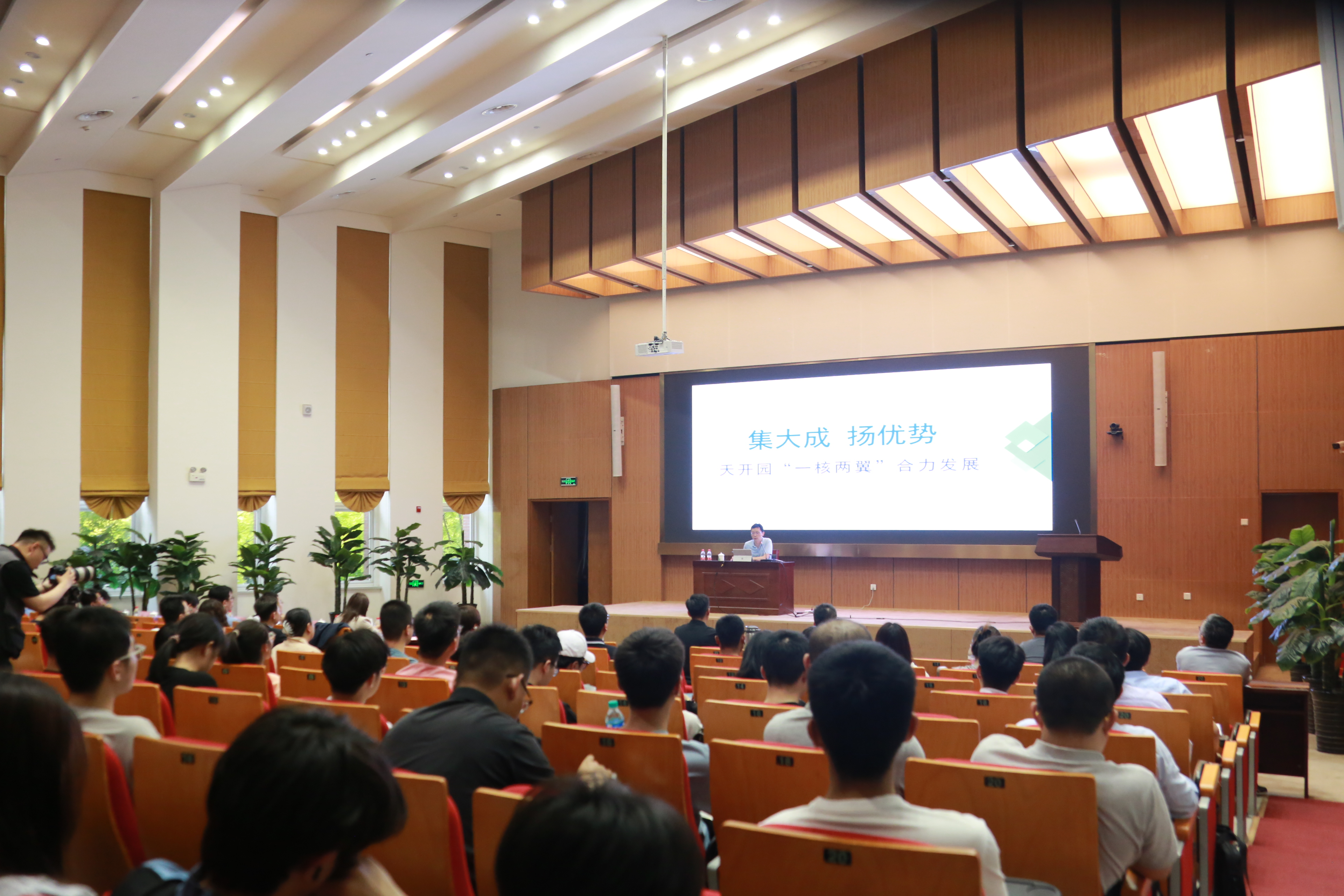 天津市科技局、科技创新发展中心技术转移部、市科学技术发展战略研究院政策部相关负责同志,学校科研及成果转化工作相关部门负责同志、各学院科研主管负责人、科研秘书,第一批拟入驻天开园10个项目团队成员,有成果转化需求的科研优秀教师,来自电气、机械、材料、电信等学院的本科生、硕博研究生创新创业团队负责人近150人参加宣讲会。