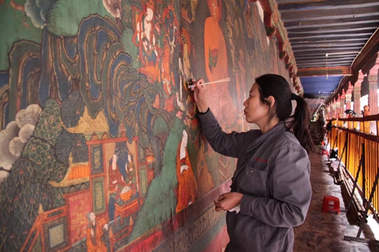 张晓彤于2012年在拉萨市大昭寺修壁画。本文图片均由受访者提供