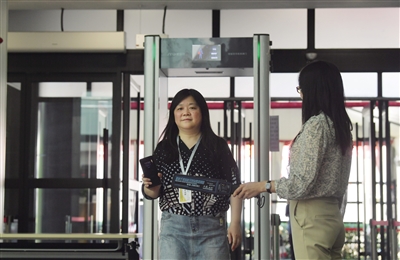 记者注意到,在人大附中经开学校考点,考生将进行两次严格安检,还首次配备了“智能型手机探测门”。