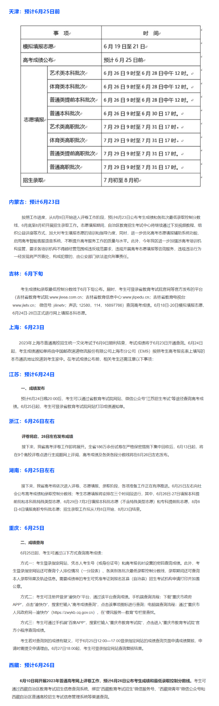 2023年全国高考10日全部结束,各地高考评卷工作正全面展开。大部分省份已公布高考放榜时间。