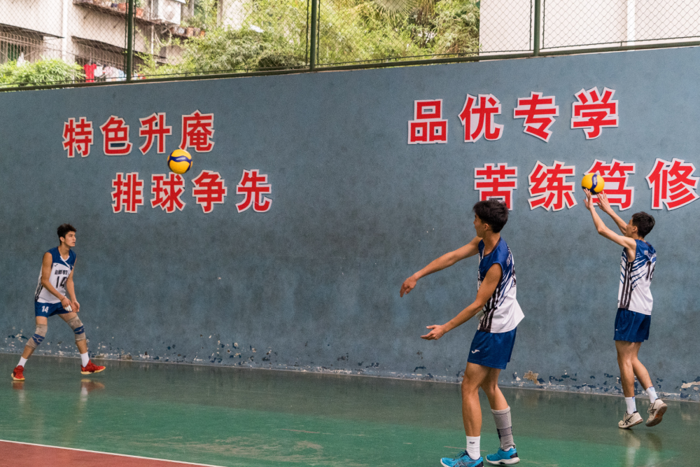 随着下课铃声响起,学生们纷纷跑到操场上活动。操场一侧是学校的排球训练馆,二十几名排球少年正在这里挥汗如雨地进行着每天的排球训练。目前,该校男排队有8名队员入选本届四川省青年男排集训队。