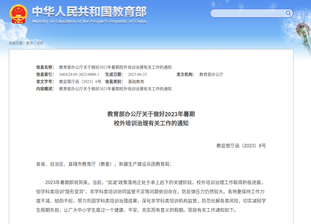 教育部日前已发布