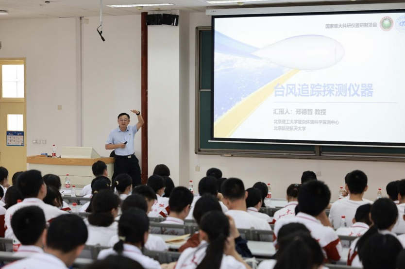 “台风追踪探测仪器”入选国家自然科学基金委支持的项目,致力于研制世界上最高分辨率的精细数字台风反演系统,力争使我国台风精准探测、科学认知与精确预报跻身世界领先行列。活动现场,智能感知领域专家郑德智向学生们讲解了台风生成、演化以及强度畸变等科学问题,并展示了“台风追踪探测仪器”的研制成果, 分享了自己攻克关键核心技术的科研历程,通过分享激发同学们的科研兴趣与爱国情怀。