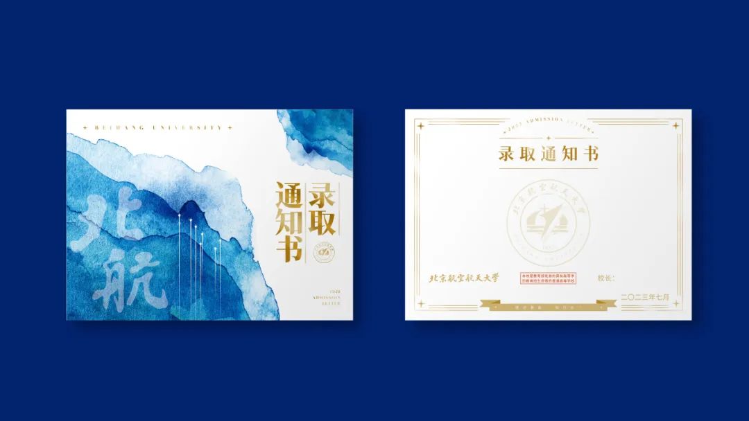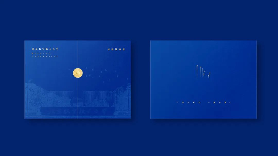 据了解,今年北京航空航天大学的录取通知书封套部分采用了厚重的“北航蓝”,内页绘制了霞光中的新主楼。录取通知书部分采用了水墨风格,蓝色的水墨在白纸上氤氲散开,寓意北航学子的梦想像水墨的涟漪一般,向北航行,一路华章。此外,学校还为每个被录取的学生送上了一个“秘密锦囊”,内含“北京一号”模型U盘、北航首枚校徽以及最新校徽。