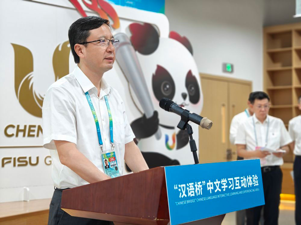 教育部副部长、成都大运会组委会副主席陈杰在揭幕仪式上致辞表示,为更好服务来自世界各地的青年运动员,让大家在参赛之余进一步了解中国语言文化,教育部专门在大运村设立“汉语桥”中文学习互动体验区,开展“语你同行,畅享大运”主题活动。体验区包括学说中国话、学写中国字、学做中国菜、学唱中文歌和中外高校徽章交换等内容。此外,还组织开展中国文化系列体验活动,出版了《大运中文100句》语言服务手册,为世界青年提供一个学习中文和相互交流的平台,搭建“语言之桥、文化之桥、友谊之桥、心灵之桥”。希望来自世界各地的广大青年朋友们成就梦想、收获友谊,留下一段美好的中国记忆。