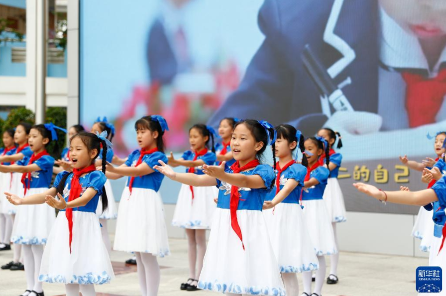 8月28日,南宁市滨湖路小学学生在活动中合唱歌曲。