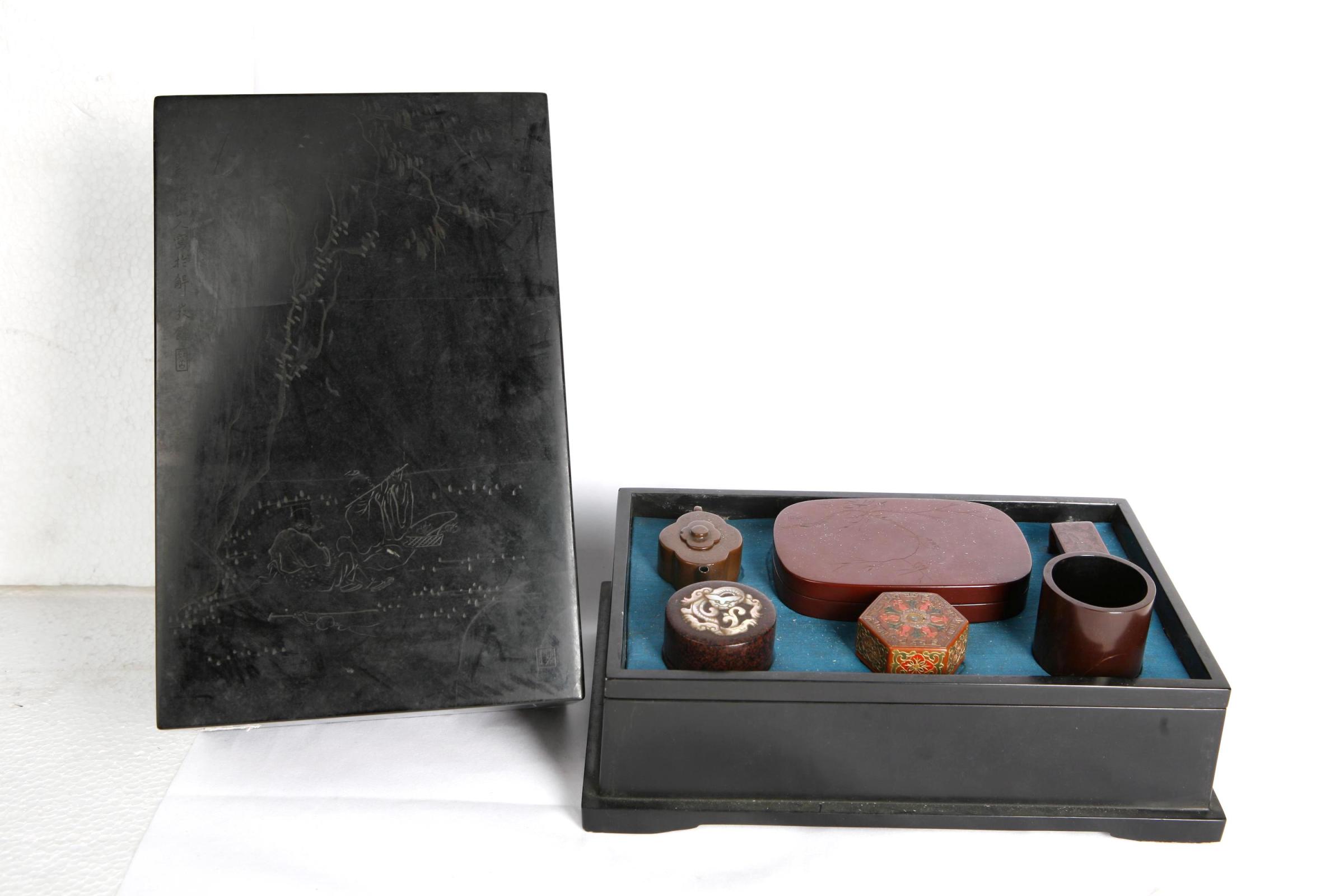 △清 卢葵生漆砂文具盒 天津博物馆藏