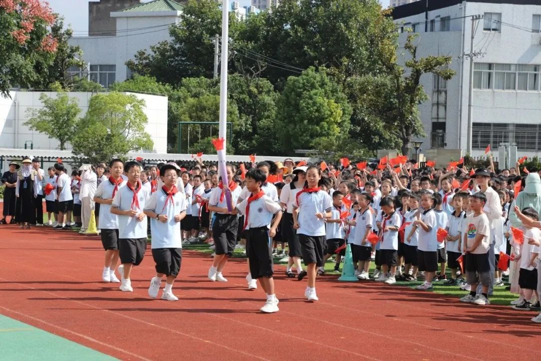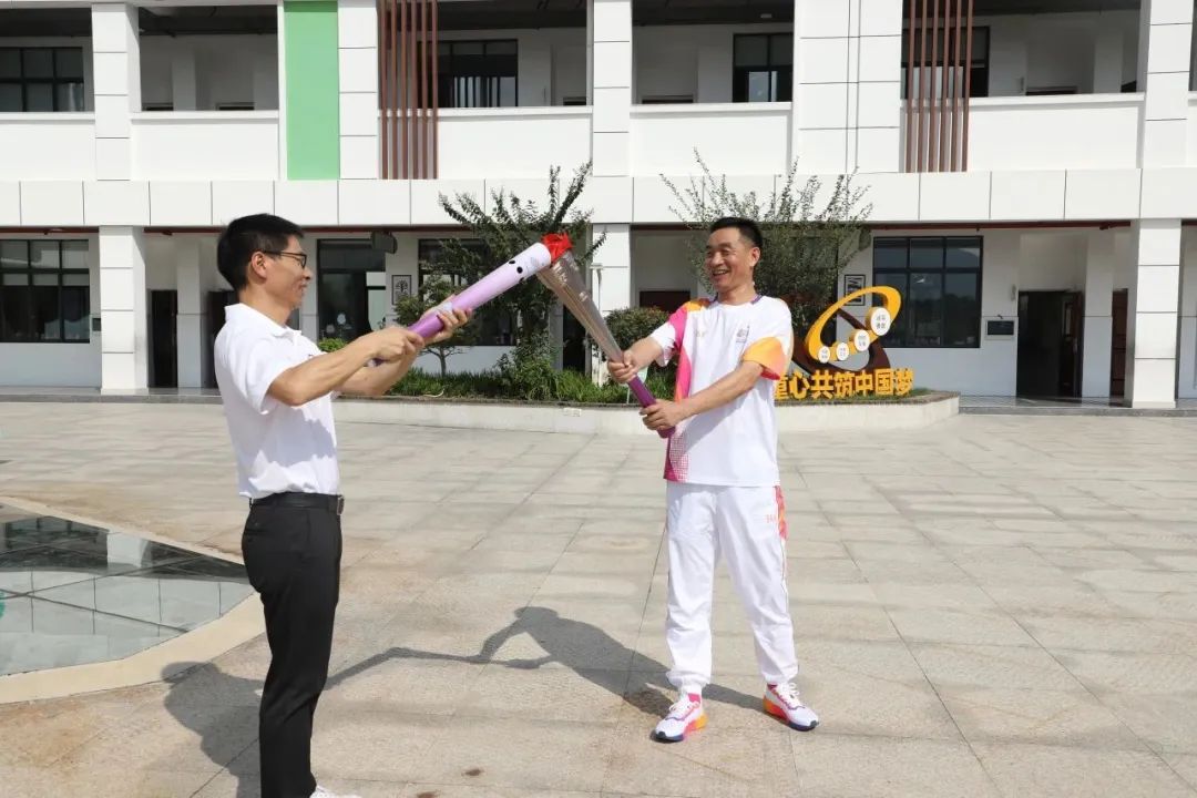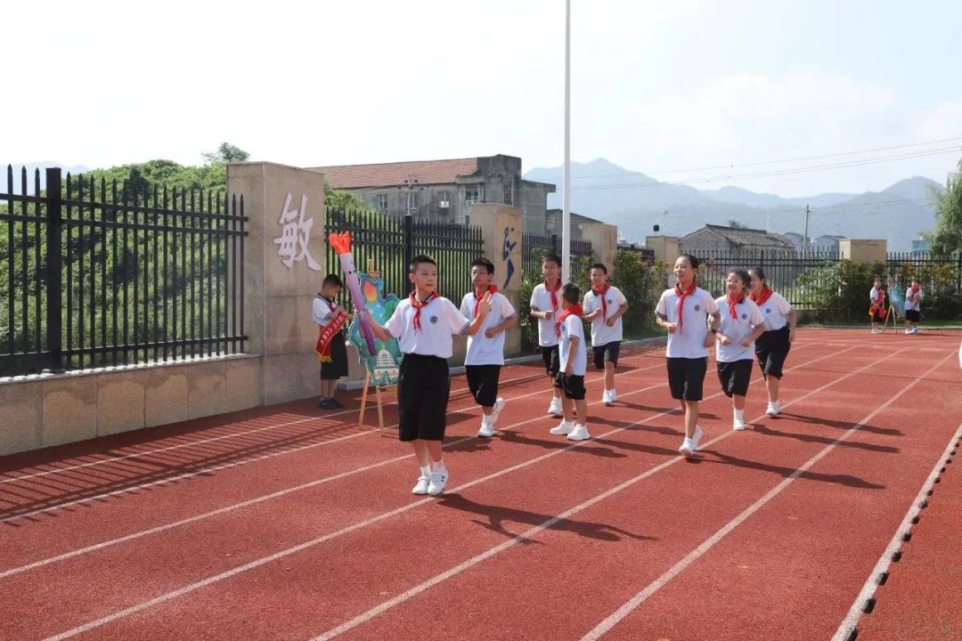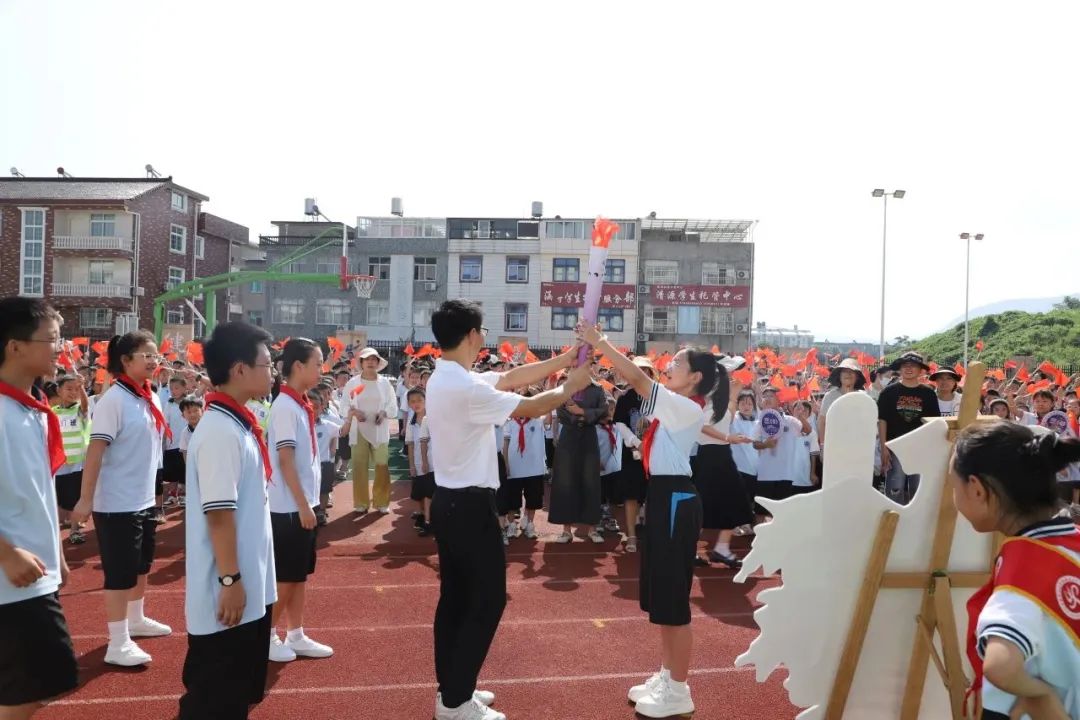 学校的跑道变成了传递“火炬”的赛道,孩子们昂首挺胸,神情专注地等待着“火炬”传递。在场师生们为每一次传递献上喝彩和掌声。